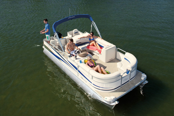 Aurora has quality structure and features of a pontoon boat available in 16', 18', 20' and 22' lengths. All ages will find an enjoyable experience cruising, exploring and spending fun-filled days together on the Oasis, the next line in the Manitou pontoons. This boat proves you don't have to sacrifice quality or style to meet your budget. Manitou's line also offers Osprey, which are great for a day of fishing, sunbathing and relaxing in the sun. New for 2009 is Encore. This line has luxury and performance with the features of more expensice pontoon boats at a more affordable level. Manitou's most luxurious line is Legacy, with standard features that make this boat a leader in its class. Probably the most popular line of pontoons from Manitou is its X-Plode line that has changed the way people view pontoon boats since its debut. With sporty furniture and design, these models bridge the gap between fiberglass and pontoon.