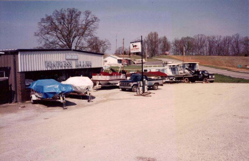 Pictured is our main location since the late 1970s. This picture was taken in 1989 when we sold gas and still transported house boats. The red boat in front of the building is a Hurricane deck boat, a line of boats we have sold for almost 30 years and continue to sell today. We are now Fentress Marine Inc.